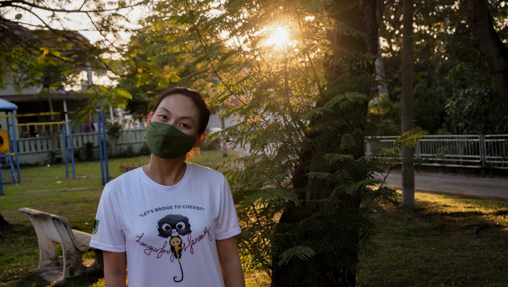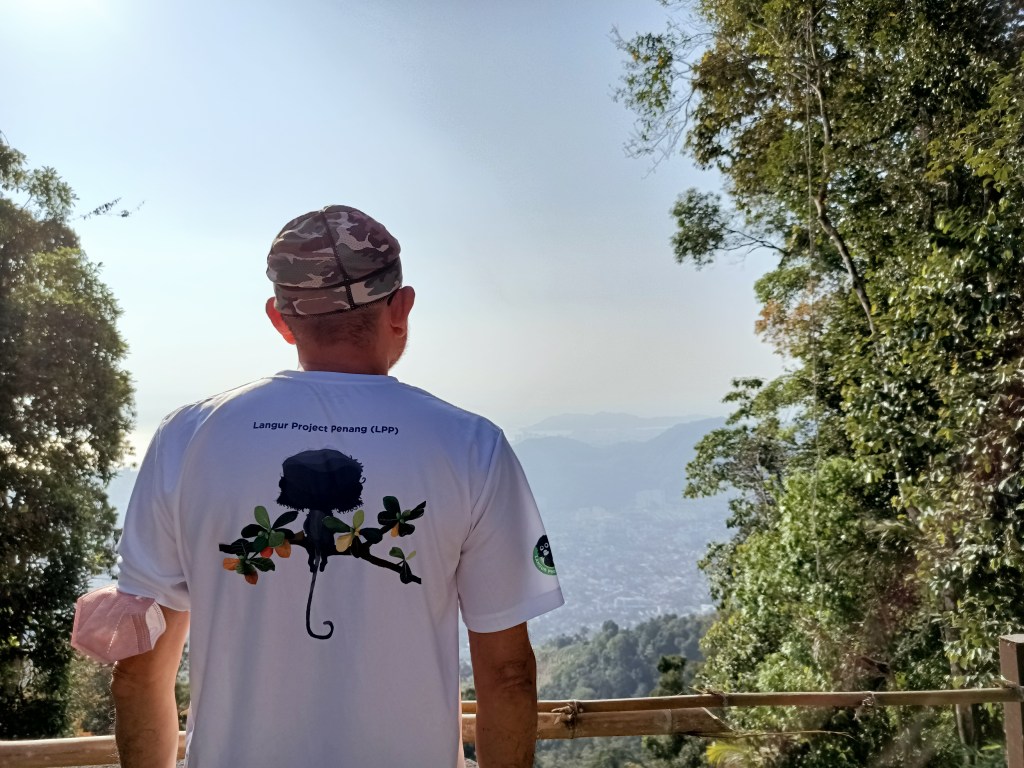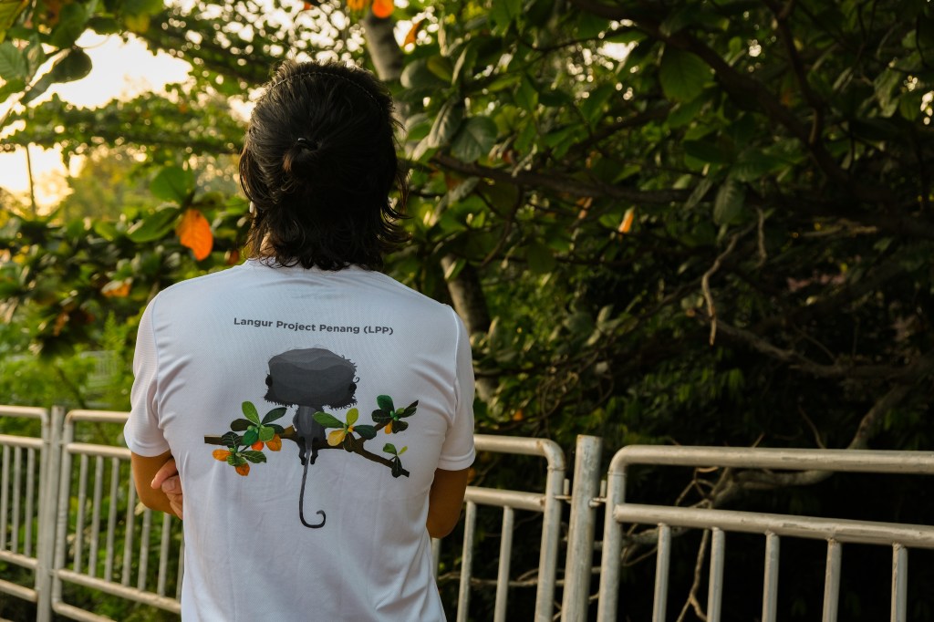 Look at the back of the shirt – where the dusky langurs are sitting on a beautiful Ketapang tree, with colourful leaves.