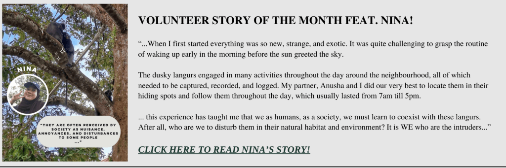 Dusky Newsletter – May 2024 Posted by Langur Project Penang on June 6, 2024 Share this: Share on X (Opens in new window) X Share on Facebook (Opens in new window) Facebook Like Loading... Related