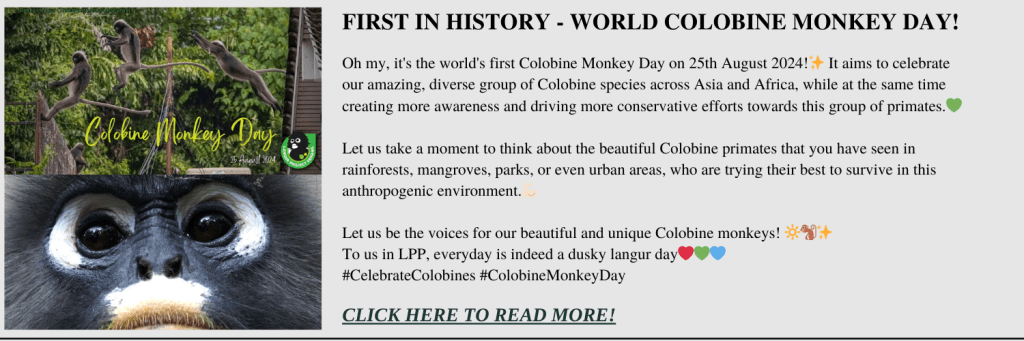 Dusky Newsletter – August 2024 Posted by Langur Project Penang on August 30, 2024 Share this: Share on X (Opens in new window) X Share on Facebook (Opens in new window) Facebook Like Loading... Related