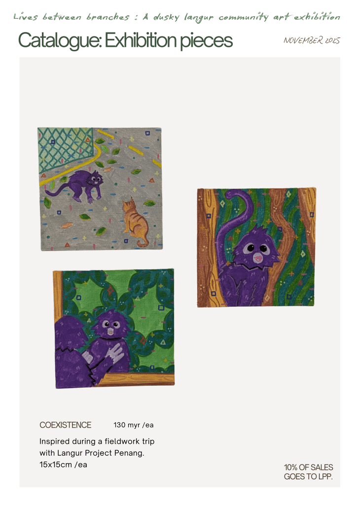 When Trisha reached out to Langur Project Penang, we instantly clicked, sharing one vision: to raise awareness for the urban dusky langurs in Penang. 💚 Soon the dream grew with 2 more talented artists, Denise Khoo from @cat.n.air and Lea from @bnnylea joining us on this meaningful collaborative journey! 🥰