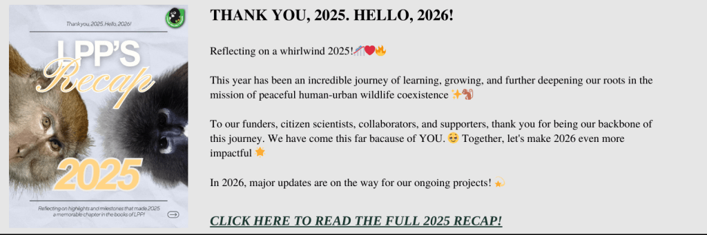 Dusky Newsletter – December 2025 Posted by Langur Project Penang on January 6, 2026 Share this: Click to share on X (Opens in new window) X Click to share on Facebook (Opens in new window) Facebook Like Loading... Related