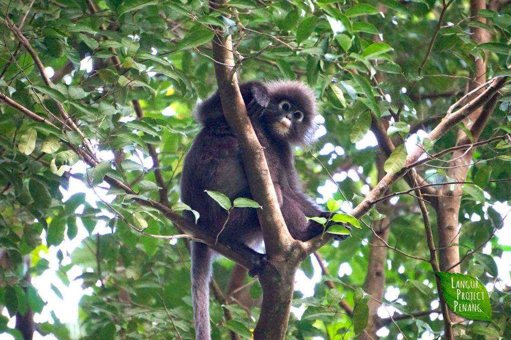 Dusky Langurs love to dwell upon higher canopies of trees in the forest. They prefer staying up there and moving around running, climbing and leaping on branches of trees.